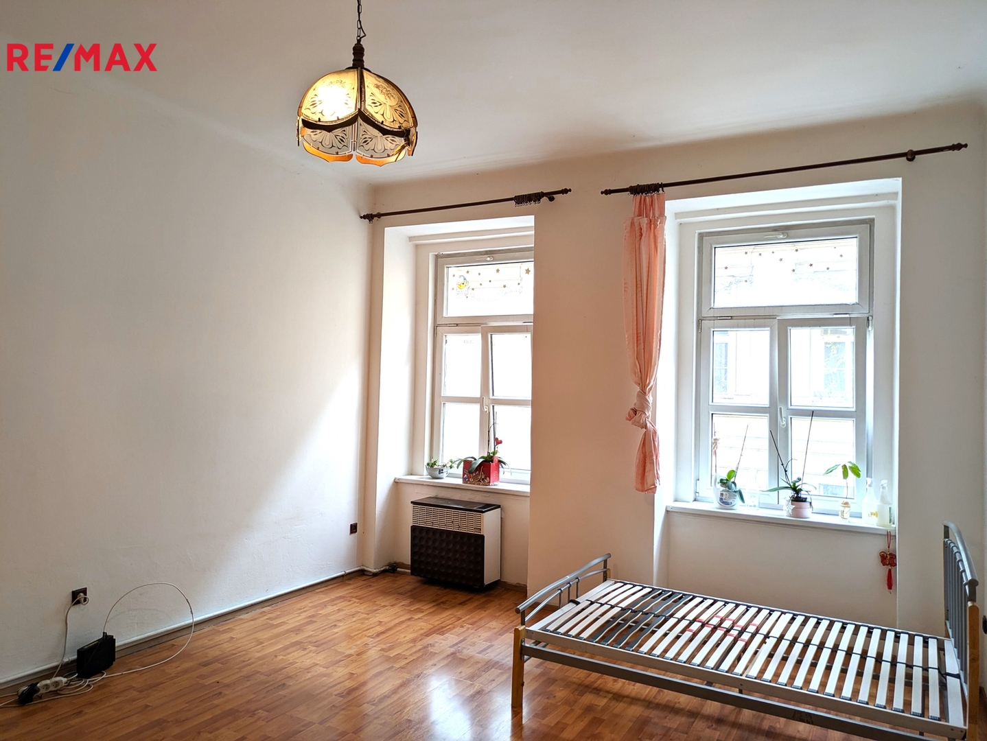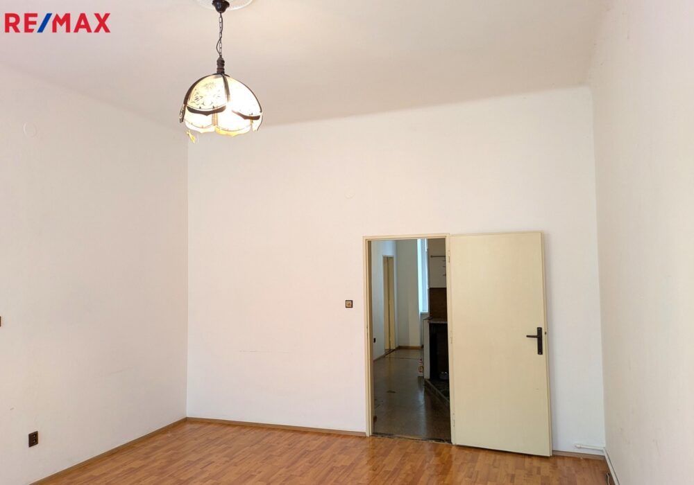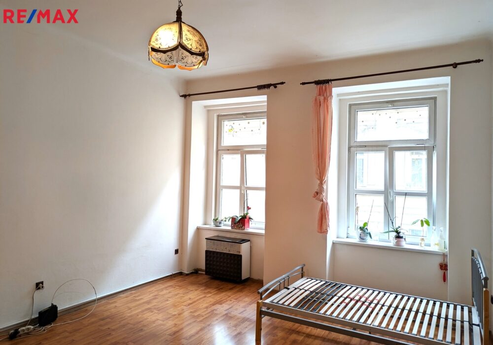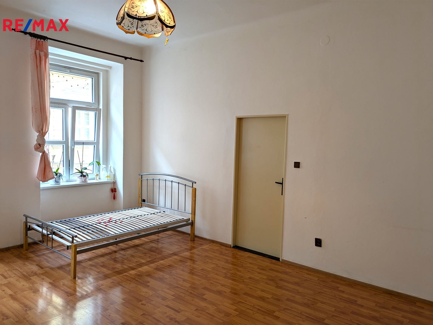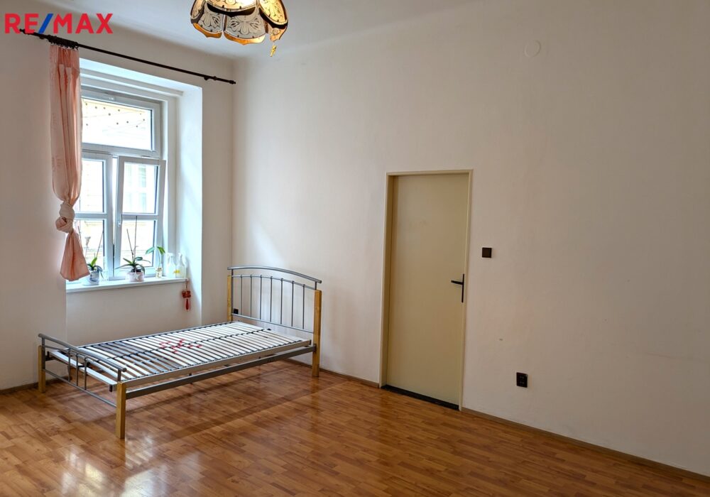 Byt o celkové výměře 83 m2 se nachází v 2. NP činžovního domu. Svým uspořádáním je vhodný jak pro nenáročnou rodinu, tak i pár, ev. dva páry. Dispozičně je byt řešen následovně: z předsíně se vstupuje do kuchyně, z ní pak do prostorného obývacího pokoje, ze kterého je dále možný vstup do pracovny / dětského pokoje. Okna těchto místností jsou orientovaná směrem do ulice a na západ. Z předsíně je dostupná také ložnice s okny do klidného vnitrobloku a orientací na východ. Z ložnice je také možný vstup do pracovny / dětského pokoje.