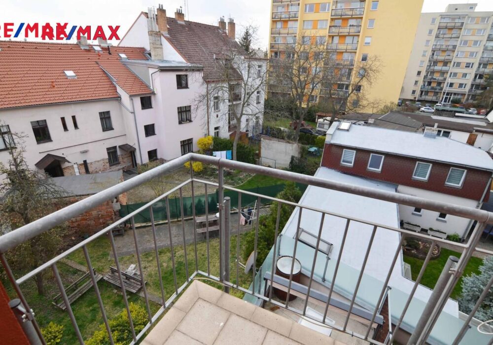 Z této místnosti je vstup na balkon orientovaný do klidného vnitrobloku.
