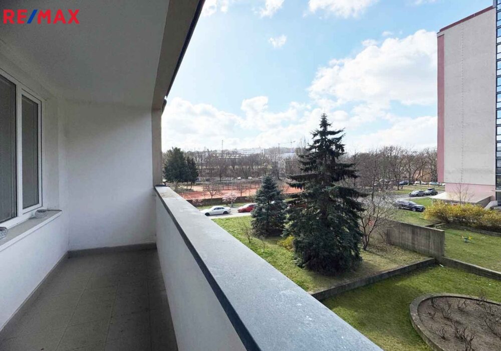 Tři samostatné ložnice a tři lodžie s velmi pěknými výhledy do zeleně a na tenisový kurt.