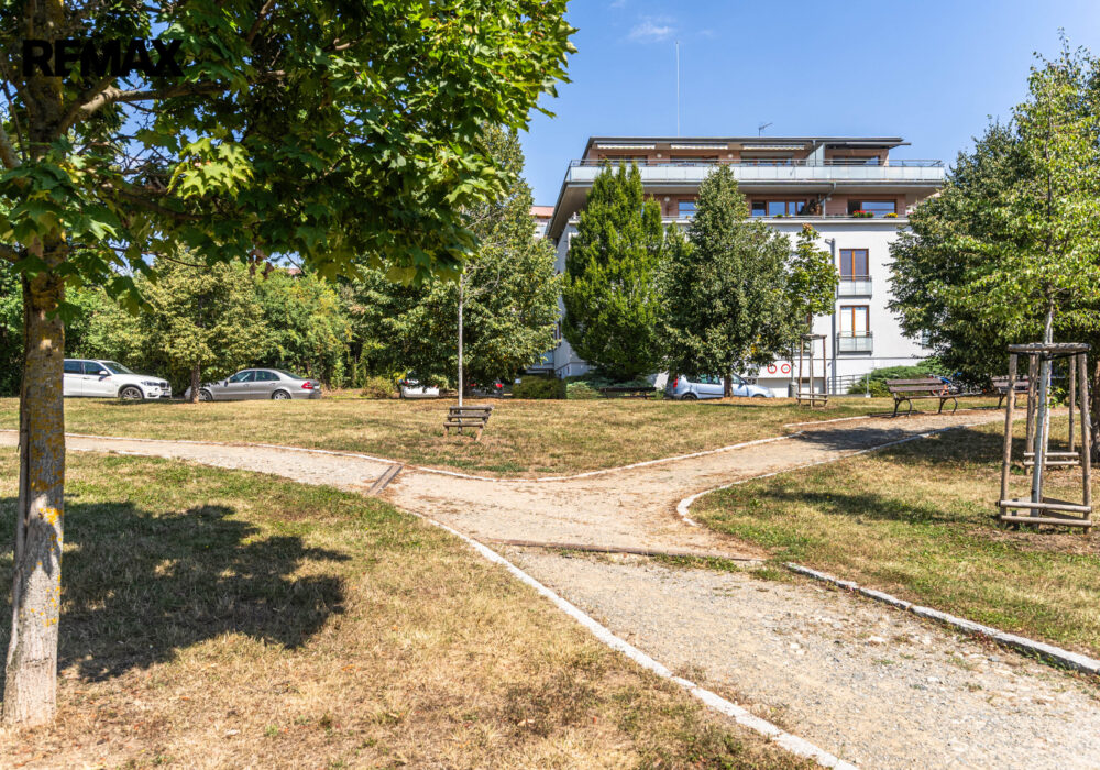 K dispozici je rovněž sklepní kóje v suterénu domu (2,8 m²) a garážové stání. V domě je kolárna/kočárkárna i plošina pro bezbariérový přístup. Dům je velice dobře udržován, je zde celkem 18 bytů a příjemné společné prostory. Byt je k dispozici na dobu určitou a to do srpna 2027. Zálohy cca 6.500,- Kč.
