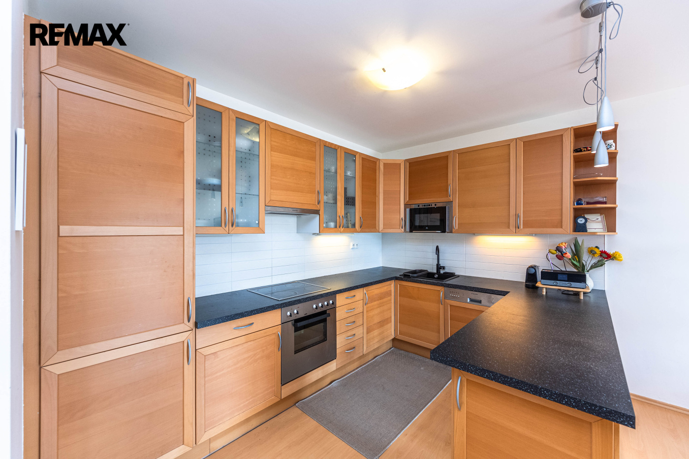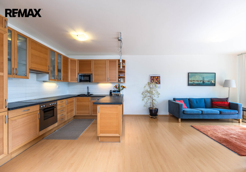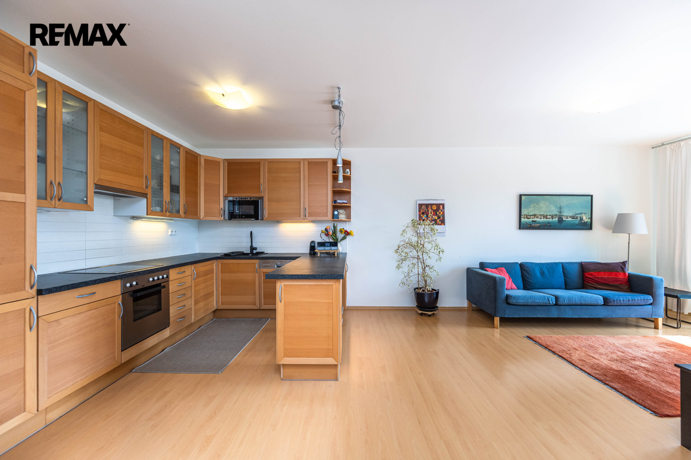 Dominantou bytu je obývací pokoj s kuchyní o výměře 44,7 m², na který navazuje pracovna/ložnice (16 m²) – oba prostory lze propojit a otevřít v jeden velkorysý celek. Z obývacího pokoje je vstup na prostornou lodžii o výměře 13, 4 m2, která nabízí výhled do klidného udržovaného parčíku s vzrostlými stromy.