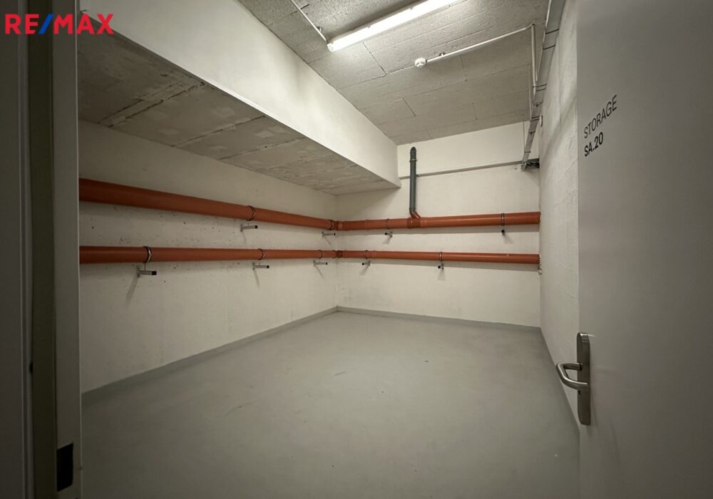 Dovolujeme si vám nabídnout pronájem podzemní garáže a skladu s vraty na elektrický pohon (23m2) a skutečně prostorný sklep/sklad (23m2). Obývací pokoj (33m2) disponuje plně vybavenou kuchyní se spotřebiči – myčka nádobí, varná deska, digestoř, elektrická pečící trouba, lednice s mrazničkou, vše doplněno dostatkem úložného a pracovního prostoru a kuchyňským ostrůvkem. Ložnice o velikosti 16m2 je vybavena prostornou skříní na míru, další úložný prostor najdeme v předsíni. V obytných místnostech je dřevěná podlaha, v ostatních místnostech dlažba. Prostorná a elegantní koupelna (4m2) nabízí sprchový kout, umyvadlo, toaletu a topný žebříček. Hned vedle kuchyně najdeme praktickou komoru pro umístění pračky a sušičky. Nejvyšší možný standard bytu doplňuje intelignetní domácí systém s centrálním panelem, kterým lze ovládat veškeré osvětlení, připojení elektrospotřebičů, topení a mnoho dalšího, včetně video intercomu. Samozřejmostí jsou leektrické venkovní žaluzie pro zastínění.