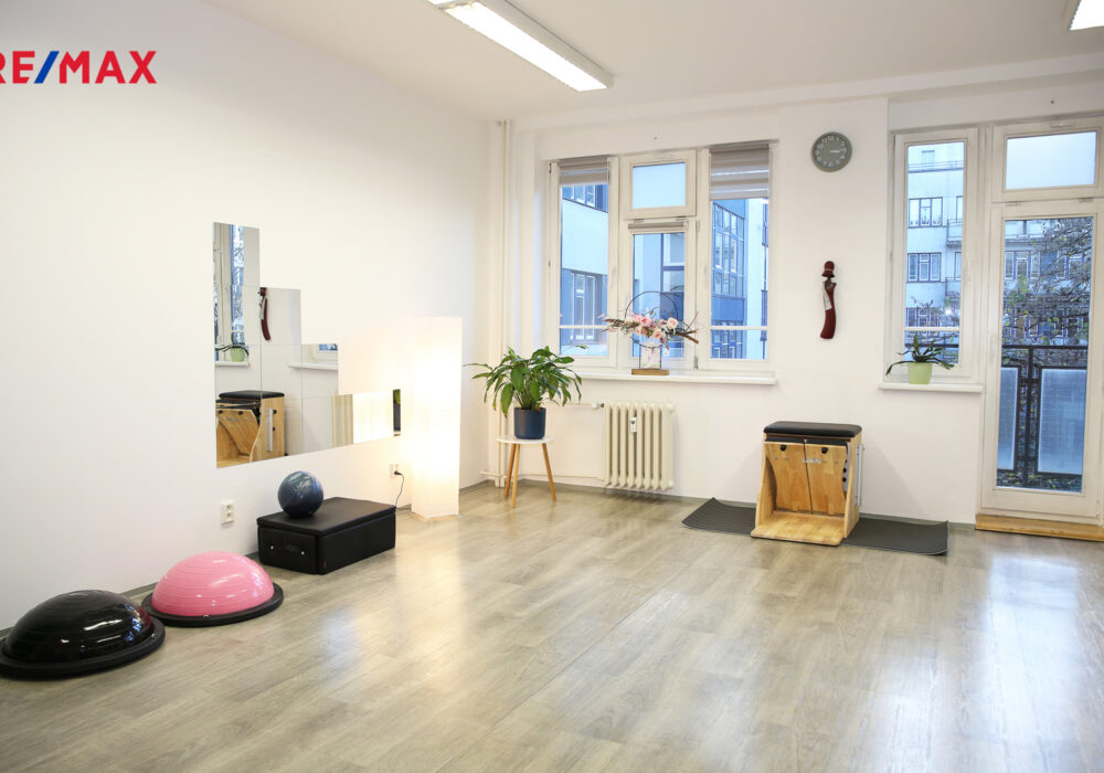 Vybavené pilates studio s balkonem k podnájmu — ideální pro cvičení, tvorbu i začínající tvůrce