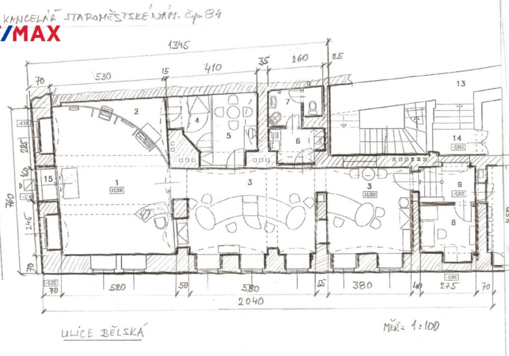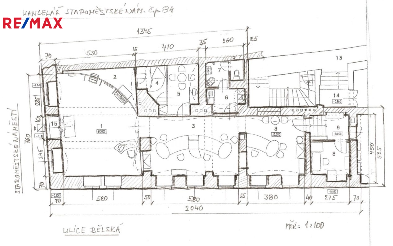Díky rohové poloze domu na křižovatce Staroměstského náměstí a Bělské ulice je prostor výborně viditelný a snadno dostupný pro klienty.