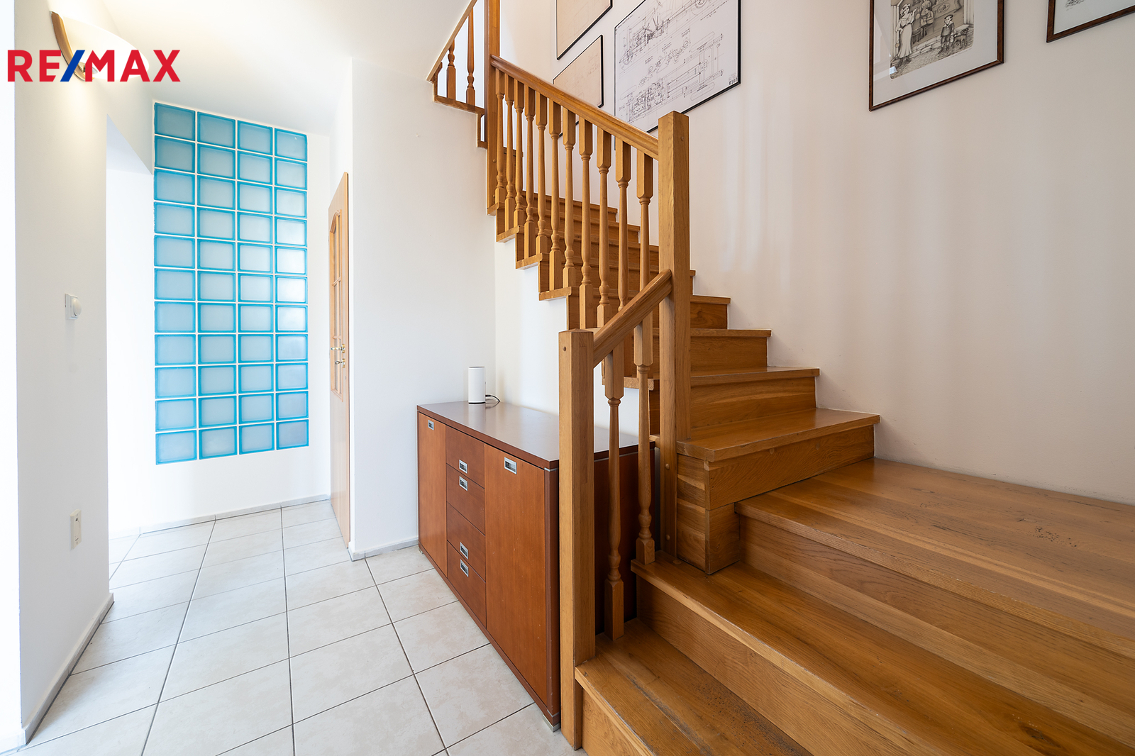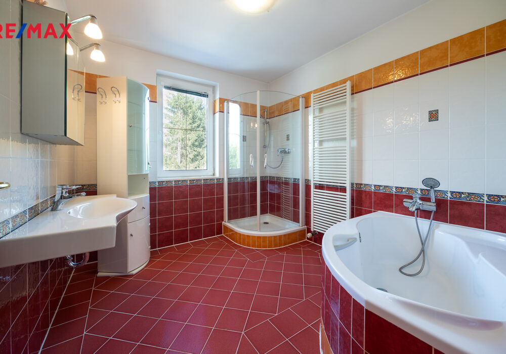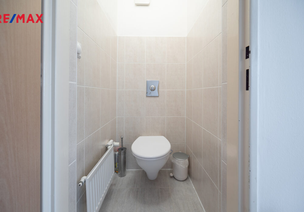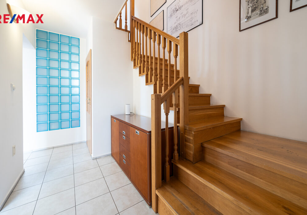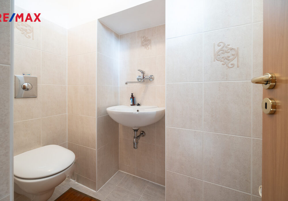 Dům je připojený na veřejný vodovod i kanalizaci. Ve sklepě je technické zázemí včetně pračky.